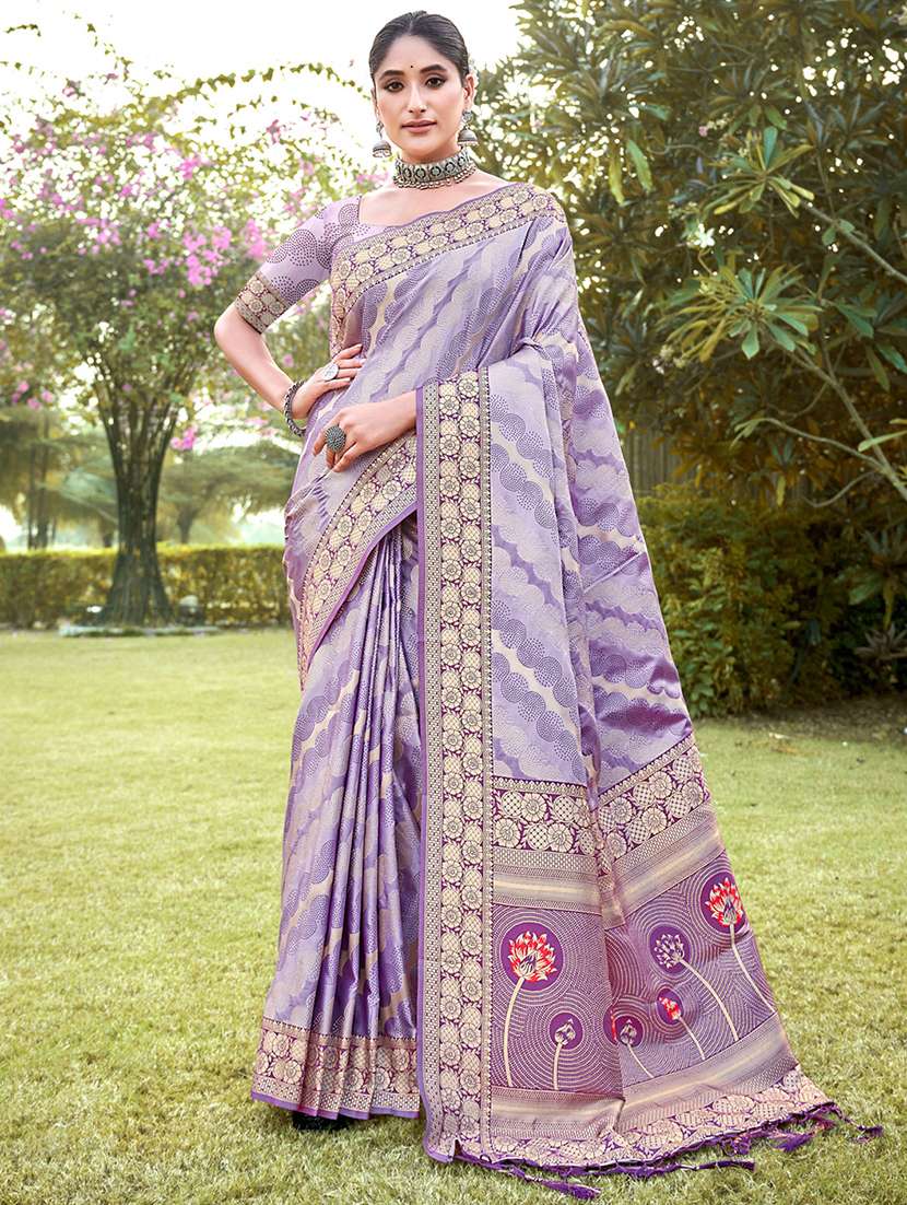 - » lavender self design banarasi saree with blouse