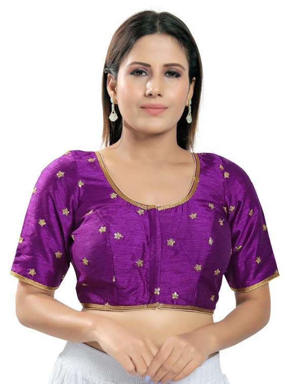 purple silk embroidered blouse