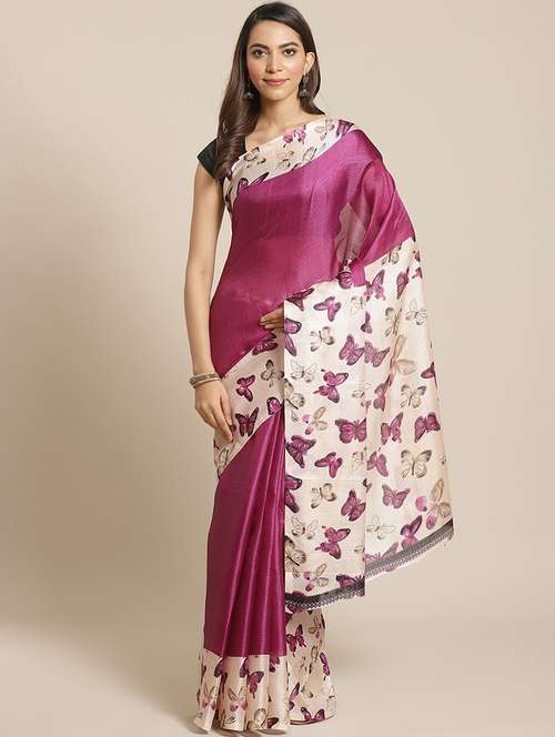 - » women's printed purple colored saree with blouse