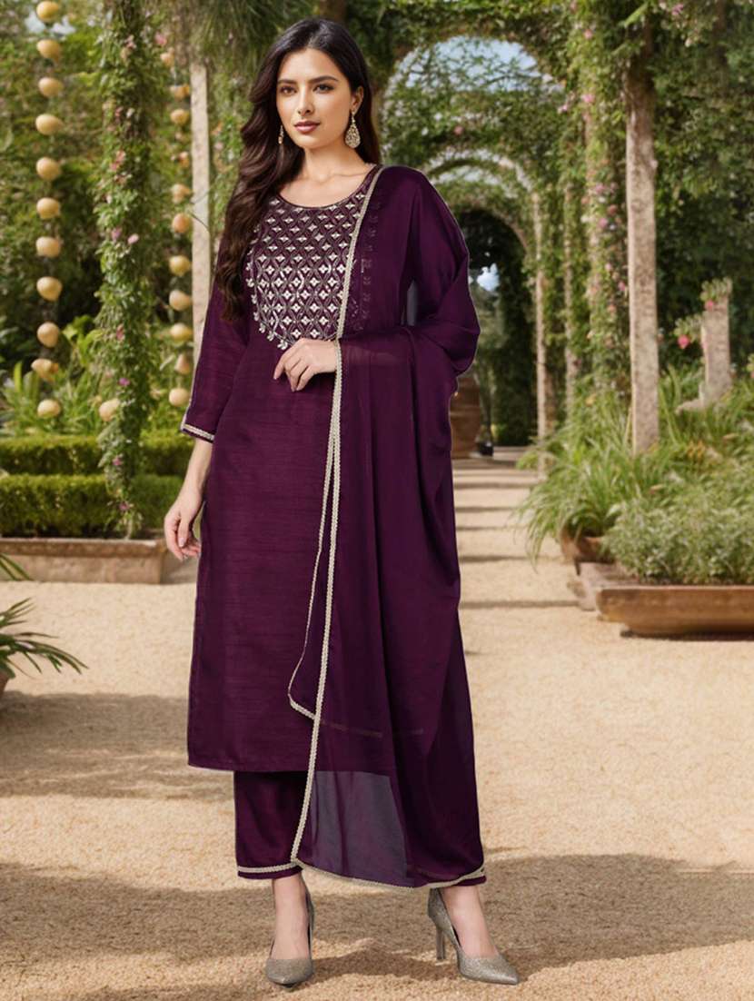 - » purple solid kurta pant set with dupatta