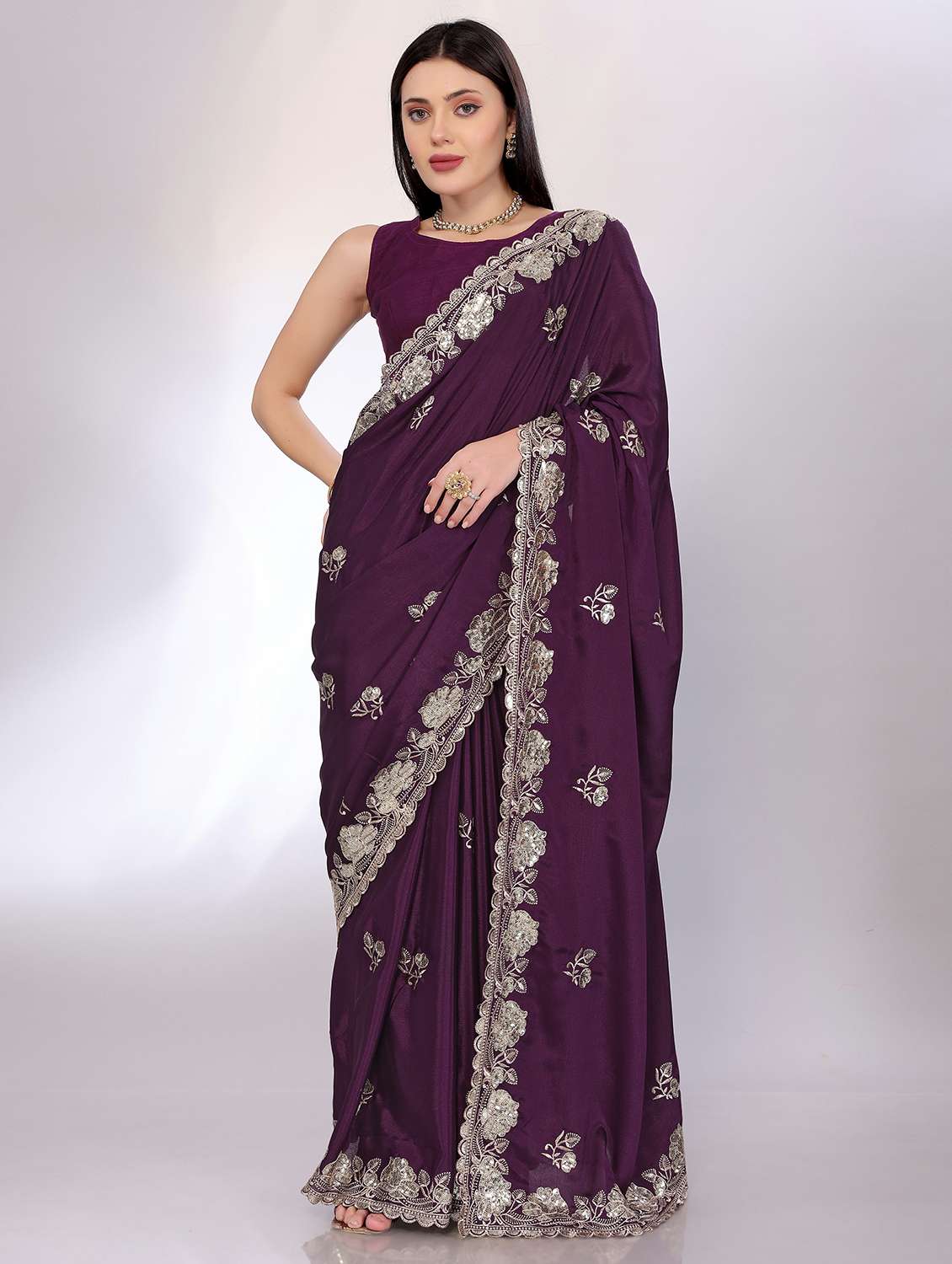 Vairagee Chinon Silk Embroidery Saree & Chinon Silk Blouse