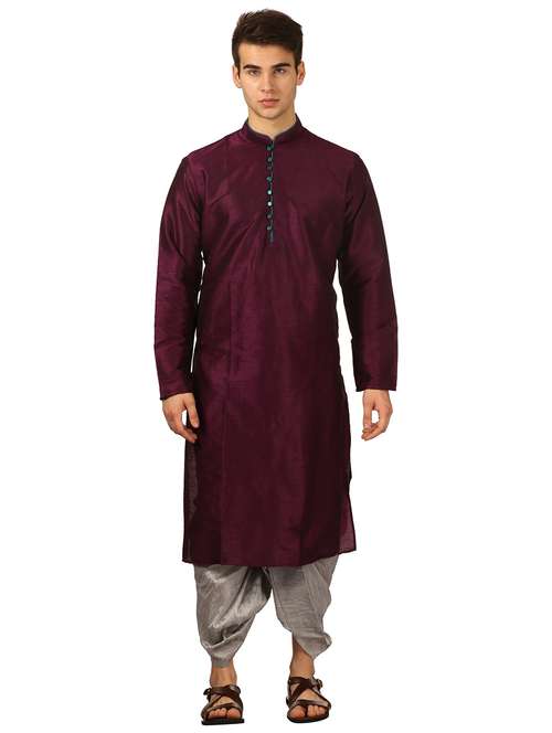 men solid mandarin neck dhoti kurta ethnic wear set - 22000140 - Very Small Image - 1