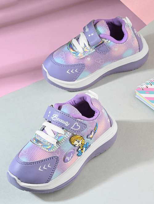 kids lavender printed velcro sneaker