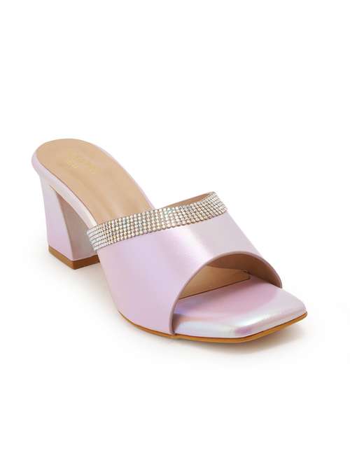 purple synthetic mules sandals