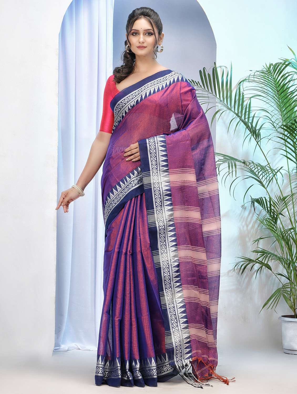 women solid with bordered saree with blouse