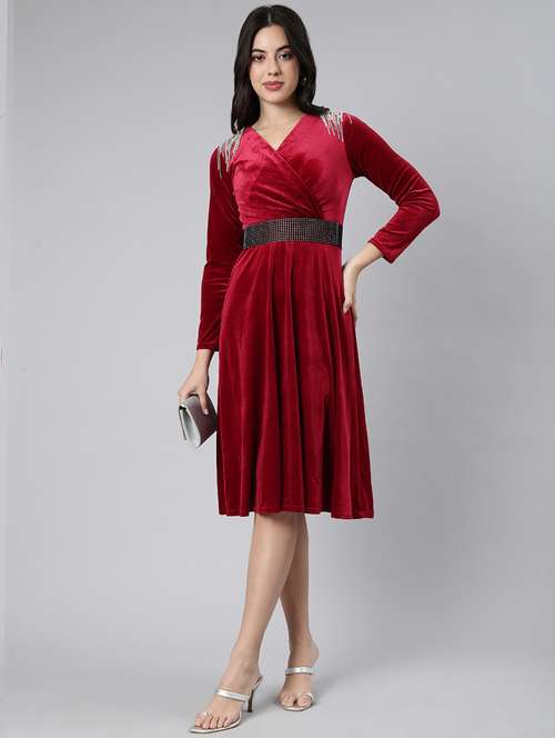 - Dress up in a soothing pattern and don this dress made of velvet material.