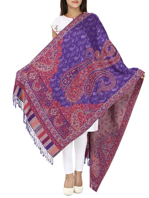 - Add purple colors to your winter collection with the comfortable variety of shawls made of viscose materials starting at ₹559 price range.