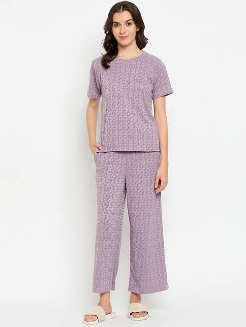 - After a long tiring day, slip into something homely, shop for the all-new collection of nightwear sets for ladies in M sizes and gorgeous purple designs and colors.
