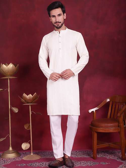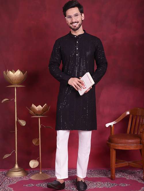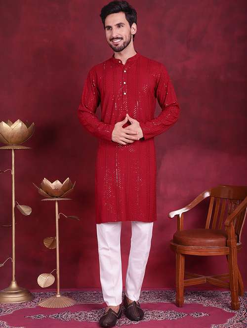 - » men mandarin neck sequined long kurta