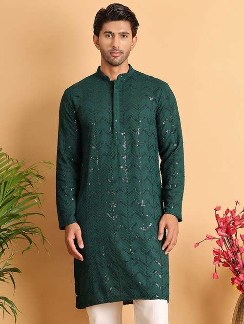 - » men sequin work mandarin neck long kurta