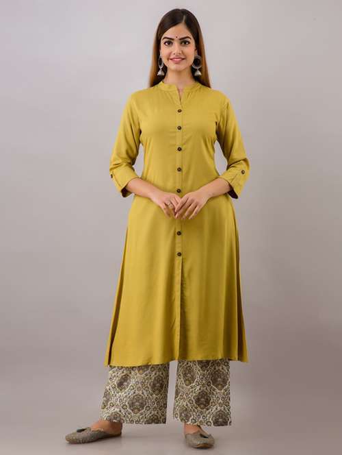 - Grab this beautiful kurta made up of rayon fabric featuring mandarin collar neck designs.