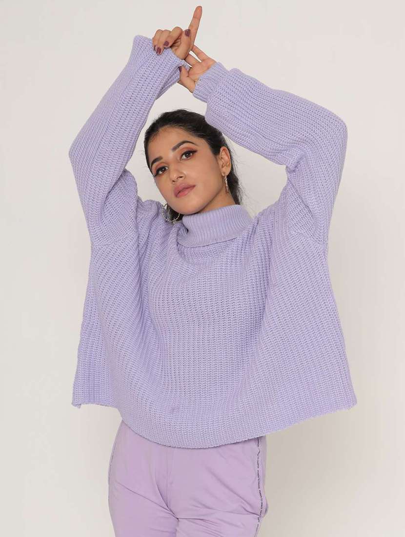 women lavender turtle neck baggy pullover