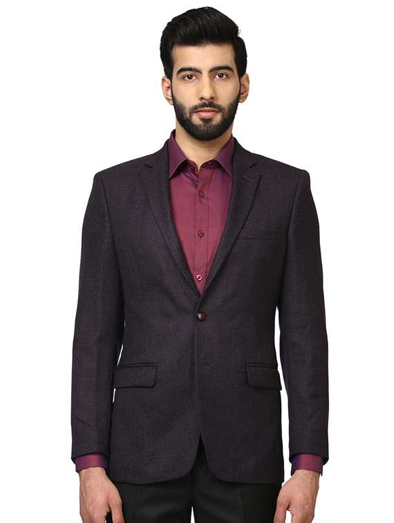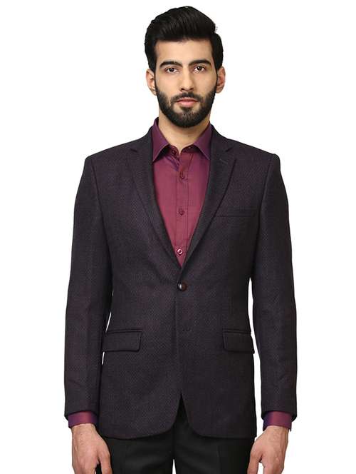 - » purple self design single breasted formal blazer
