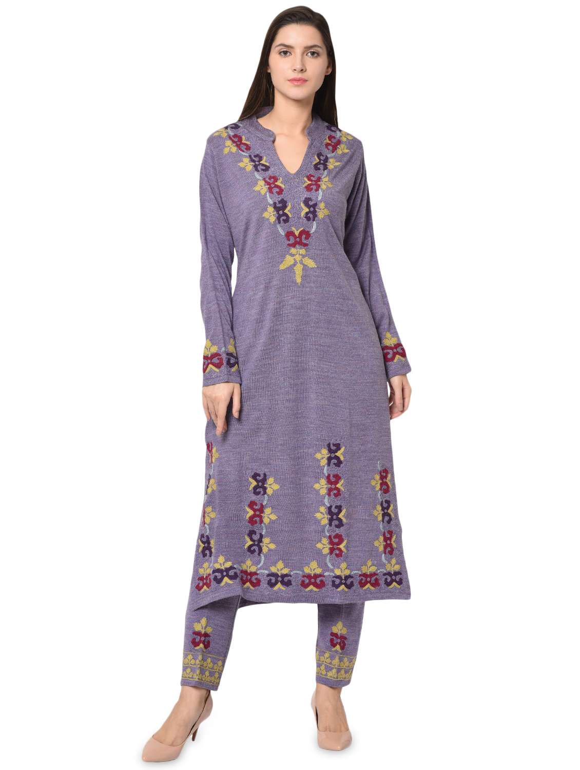embroidered woolen kurta pant set