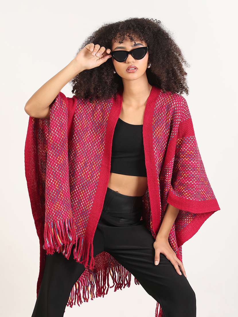 - » women self designed fringed hem shrug