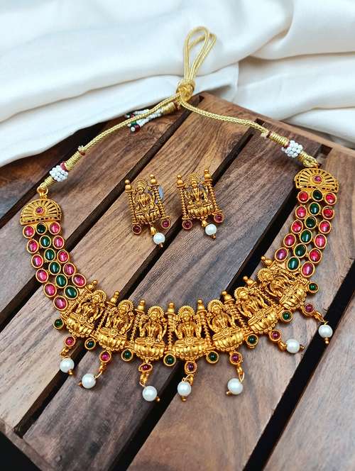 - » women traditional laxmi gold plated necklace set