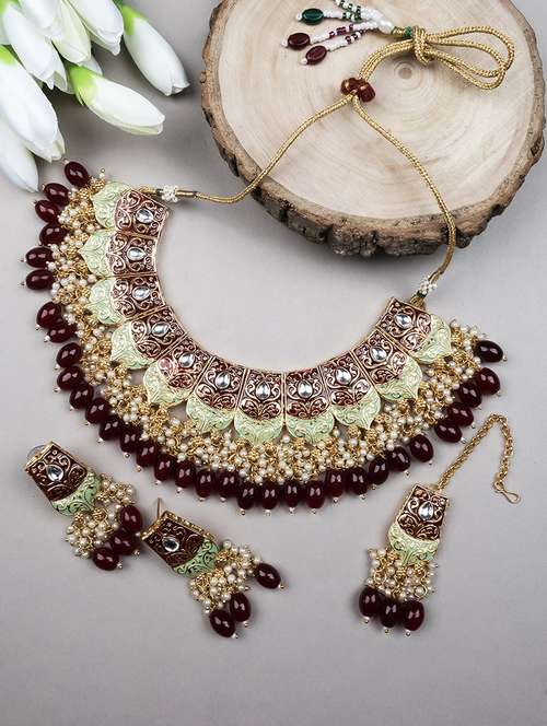 - Lay your hands on this exquisite jewellery set from StileAdda in maroon colours.