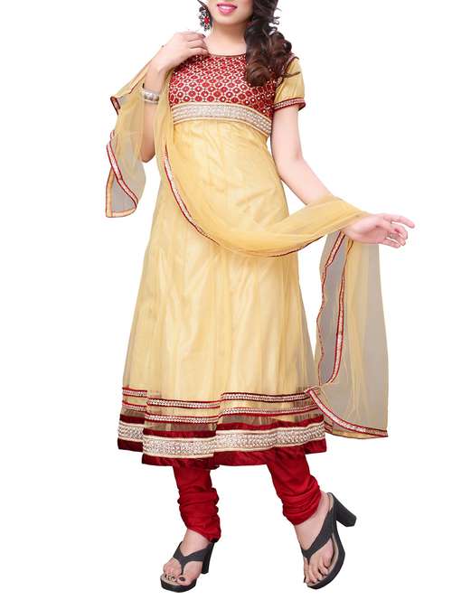 - » red and beige net embroidered semi stitched anarkali suit set