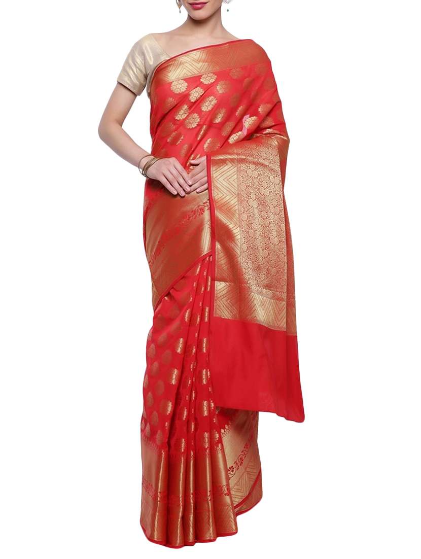 - » red art silk banarasi saree with blouse