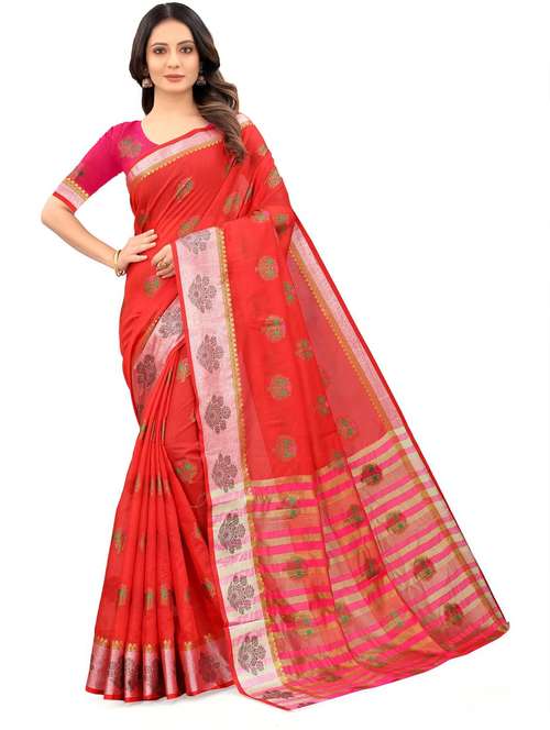 - » red art silk banarasi saree