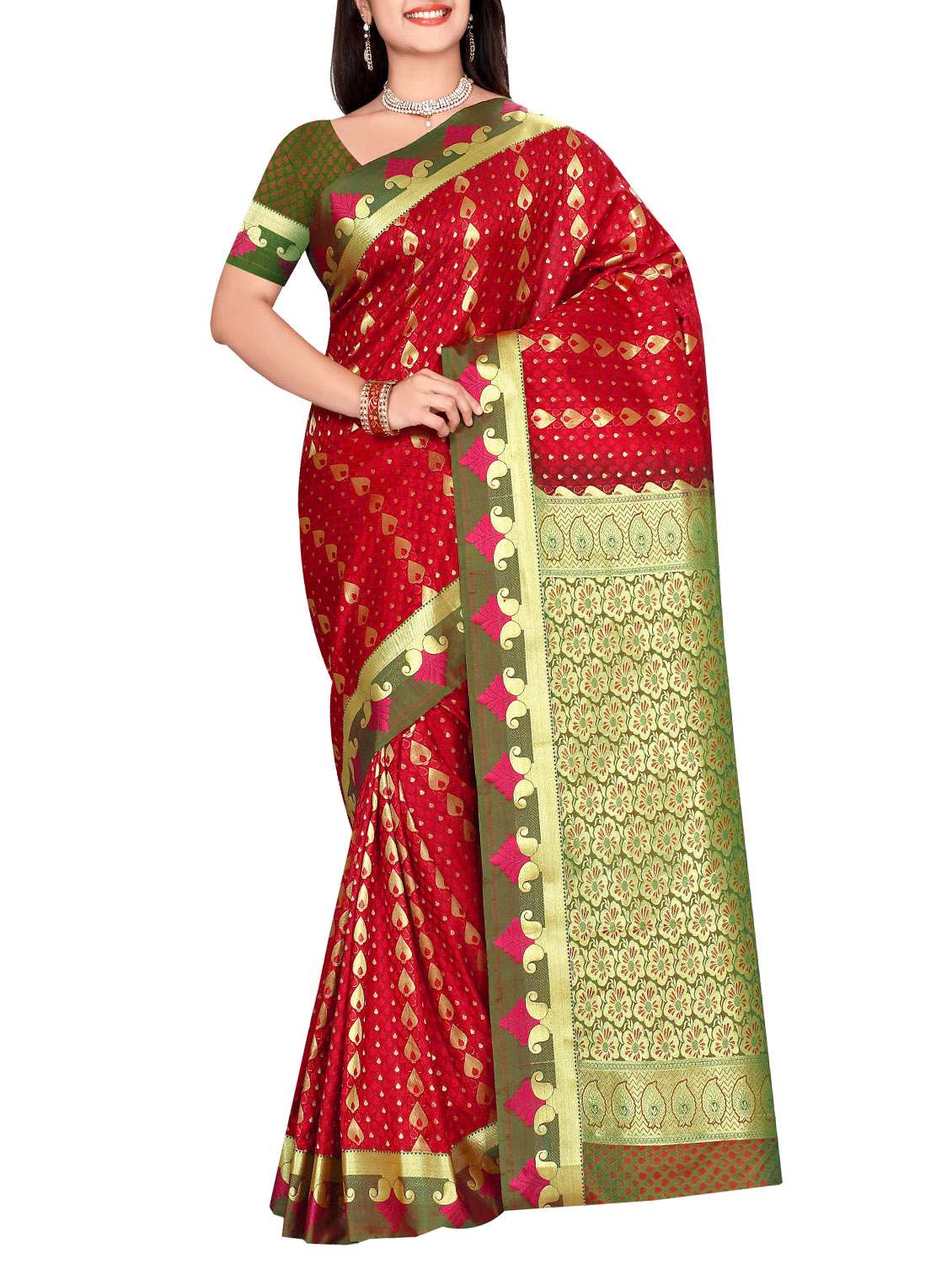 red art silk kanjivaram saree with blouse