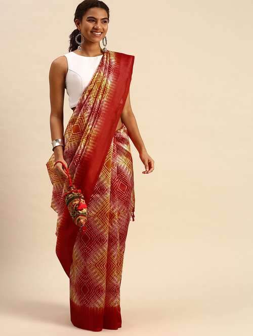 - » contrast border printed saree