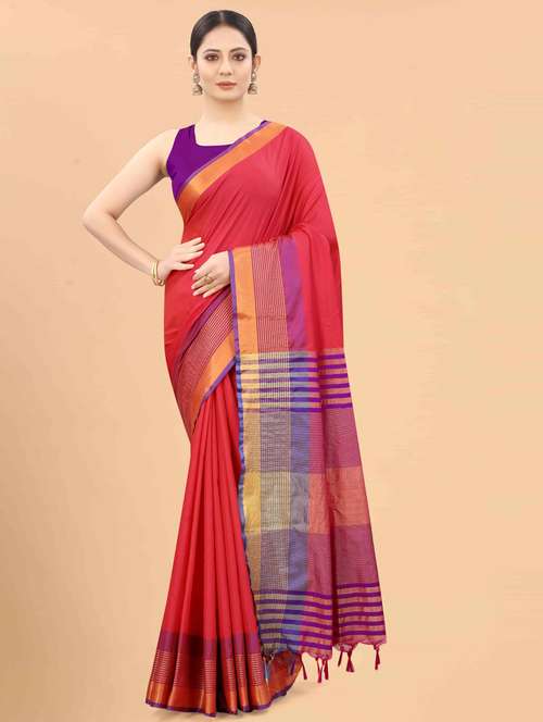 - » women's self design red colored saree