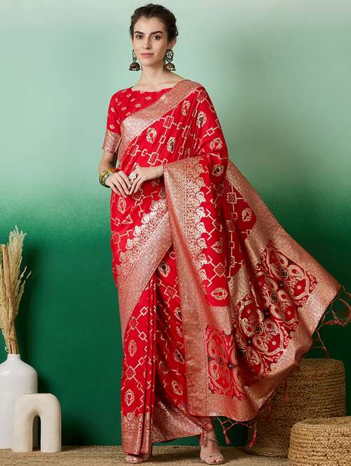 women self design banarasi saree with blouse