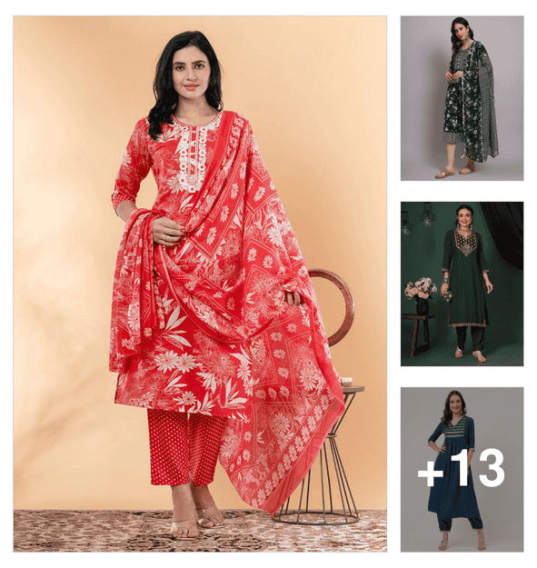 women embroidered three quarter sleeve kurta pant with dupatta set