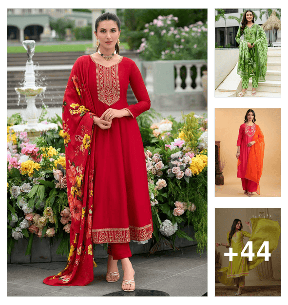 women embroidered three quarter sleeve kurta pant with dupatta set
