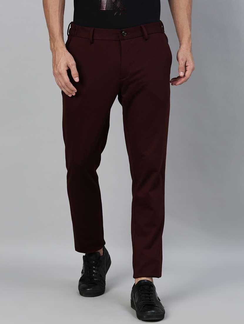 maroon solid chinos