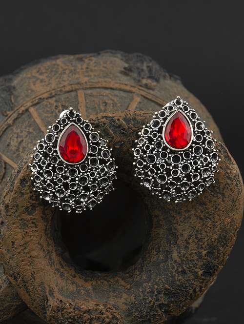 contemporary silver toned embellished with cz diamond stud earring
