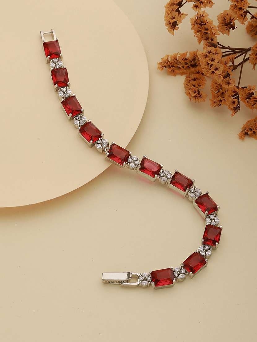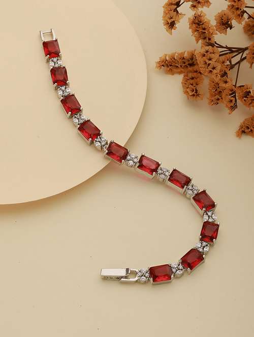 - » silver toned red ad studded minimal link tennis bracelet