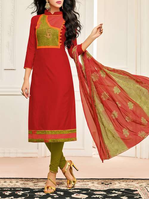 embroidered unstitched churidaar suit - 14519222 - Very Small Image - 1