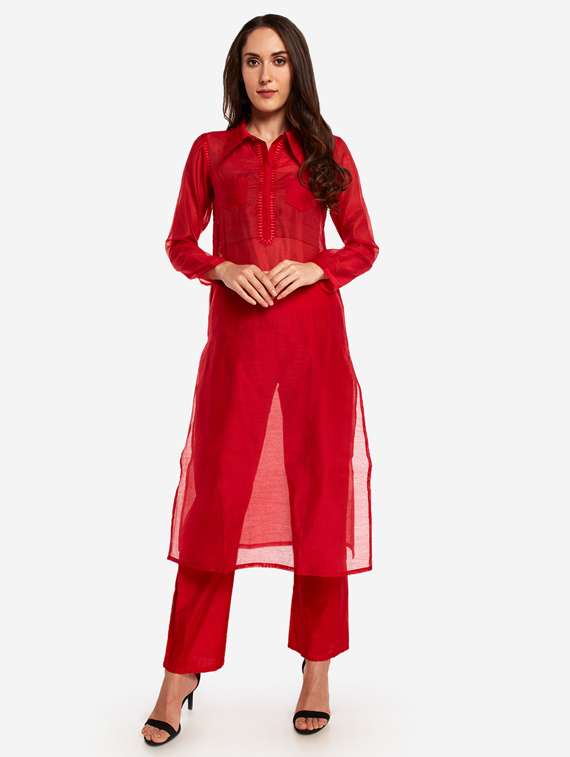 solid kurta pant set
