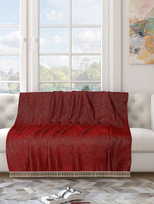 Saral Home Maroon Chenille Sofa Throw ( Set Of 2, 140X125 Cms)