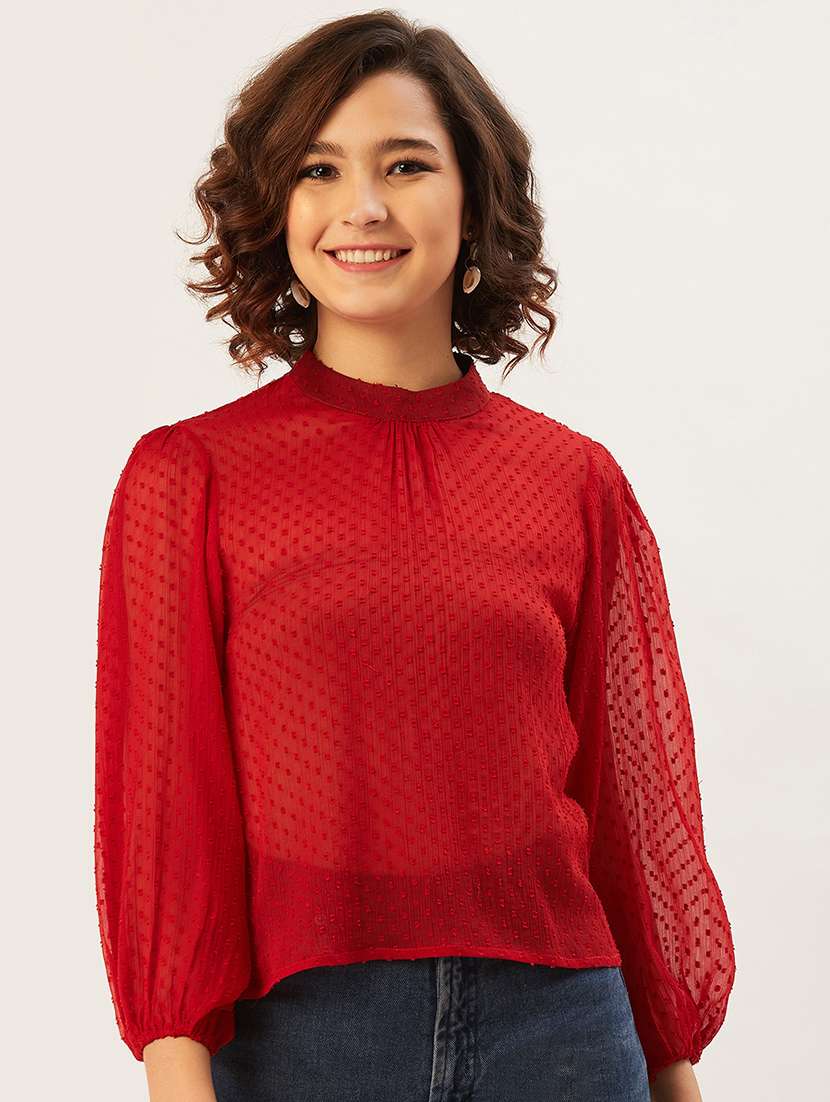 - Opt for this top made up of chiffon material and get it in a varied neck design.