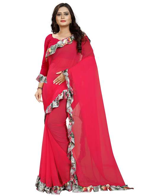 women solid with ruffle bordered saree with blouse - 22060483 - Very Small Image - 1
