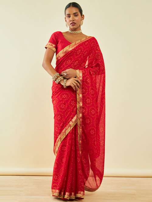 women's floral red colored saree - 20369632 - Very Small Image - 1