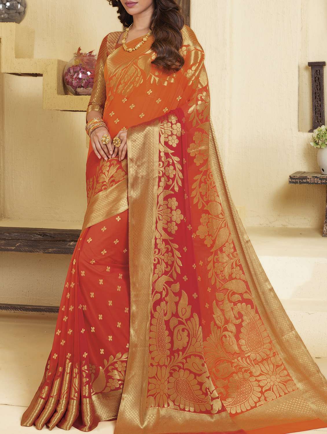 golden zari woven saree with blouse