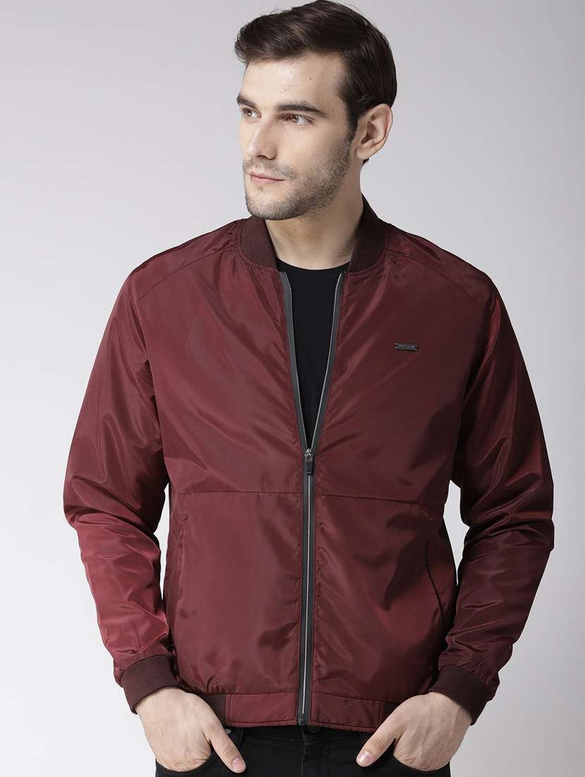 maroon polyester bomber jacket