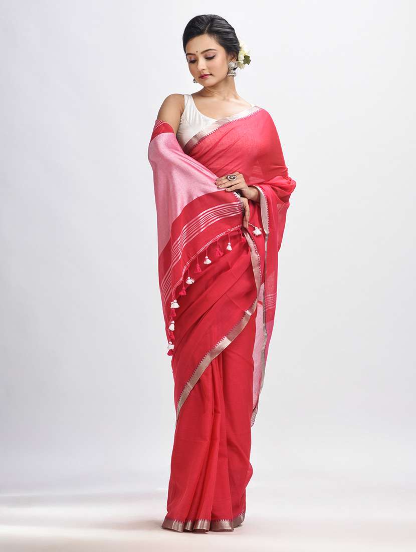 red cotton handloom saree