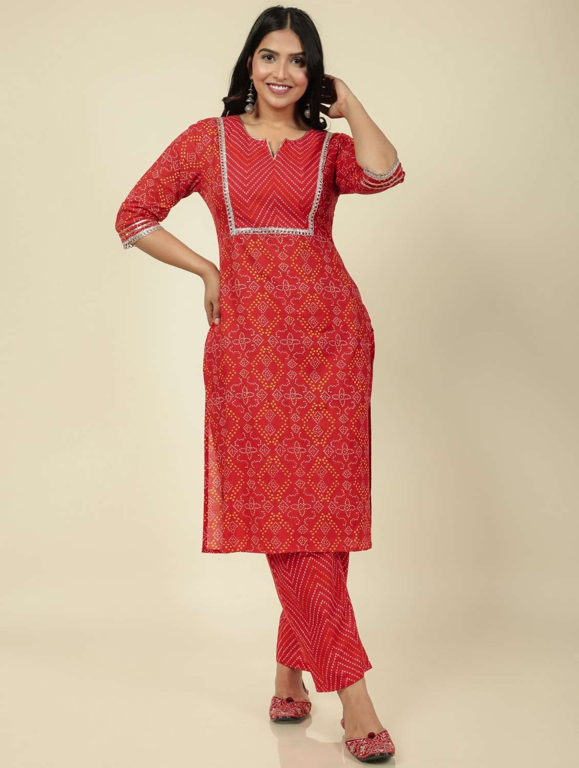 - » women red kurta pant set