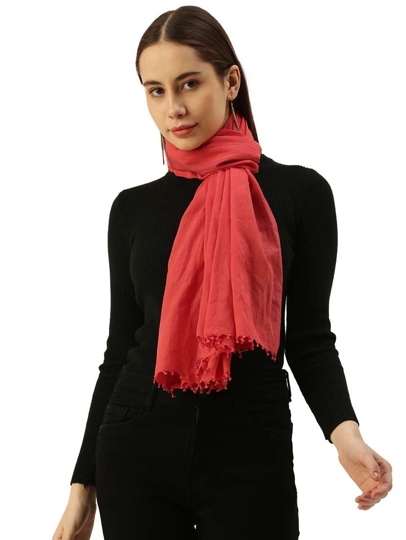 Red Solid Scarf, Has Tasselled Border