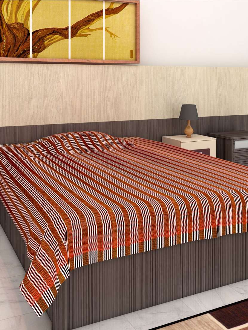 athom living 100% cotton handloom bed cover/ bed sheet single 148x224 cm red