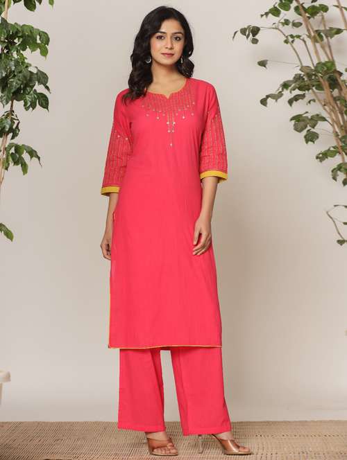 - Find gorgeous sets of ethnic wears in trending designs in pink colors suitable for festive wear of occasions.