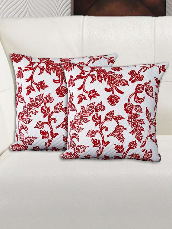 - » avira home 100% cotton matalesse printed cushion cover- set of 2-red & white