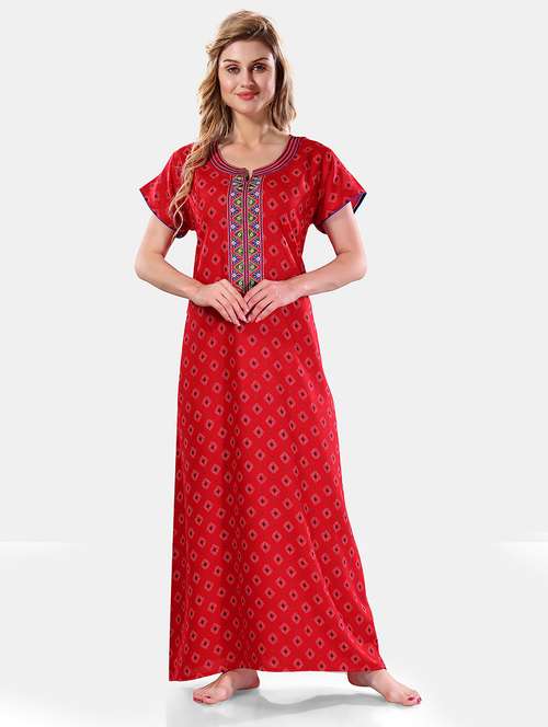 Make yourself look highly comfortable & stylish with this Fine Heavy Cotton Alpine Cotton Nighty / Night Gowns. It has overall Botanical print with beautiful heavy embroidery design on the neck pattern with openable button details, one side pocket. Can be used for maternity purpose also.. It is the ultimate blend of comfort.
