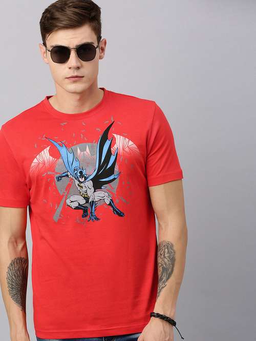 - » red chest print round neck t-shirt