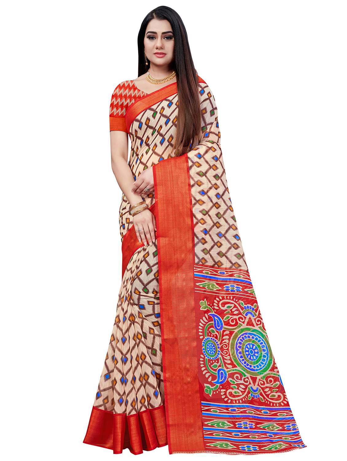 - » ikat printed saree with blouse